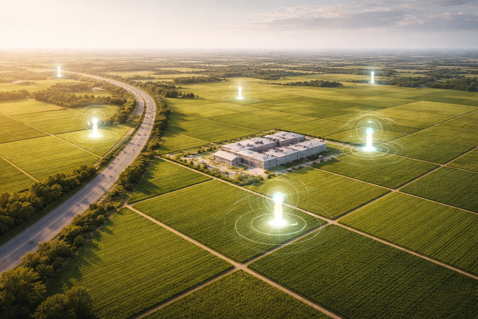 Pre-qualified parcels — scored for power, fiber, water, disaster risk, and more.